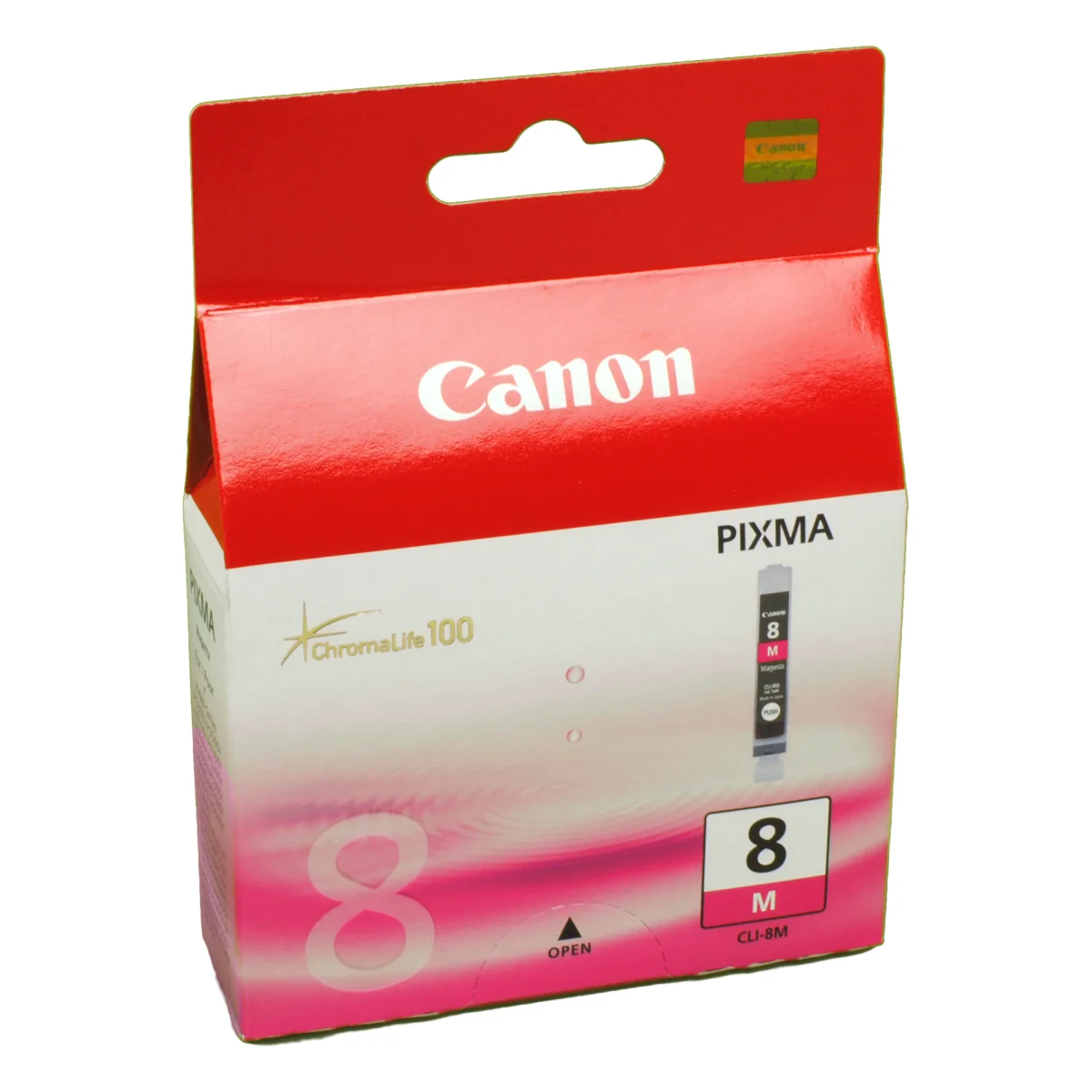 Canon CLI-8M w/Sec. Typ: Original, Tintentyp: Tinte auf Pigmentbasis, Druckfarben: Magenta. Verpackungsart: SichtverpackungDie CLI-8M enthält magentafarbene Tinte.
